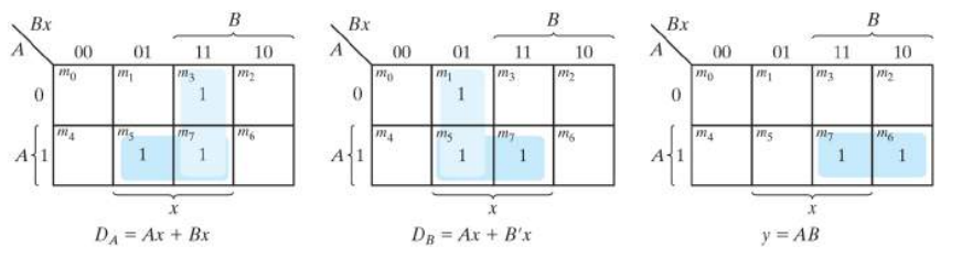 D플립플롭을 사용한 설계는 플립플롭의 입력을 나타내는 부울 식을 상태표에서 직접 얻을 수 있다.