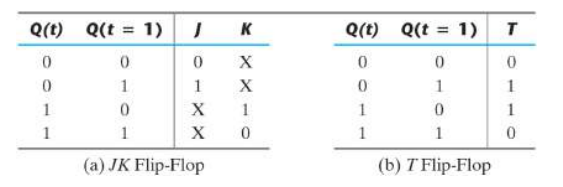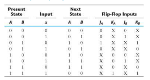 D플립플롭이 아닌 다른 플립플롭을 이용해 순차 회로를 설계하면 더 복잡해진다. 이 때 여기표를 이용한다.