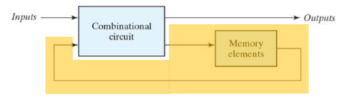 따라서 순차회로는 현재상태와 외부입력으로부터 출력값을 결정하고, 외부 입력은 기억요소들의 상태변화에 대한 조건을 결정한다. 기억장치는 동기식 비동기식으로 구분된다.