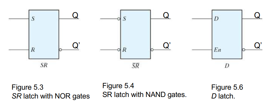 디지털 회로의 저장 요소 : 회로에 전력이 공급되는 한 (= 클럭이 들어와 있는 동안에만), 입력에 의해 상태를 바꾸도록 지시할 때까지 2진상태를 유지한다.