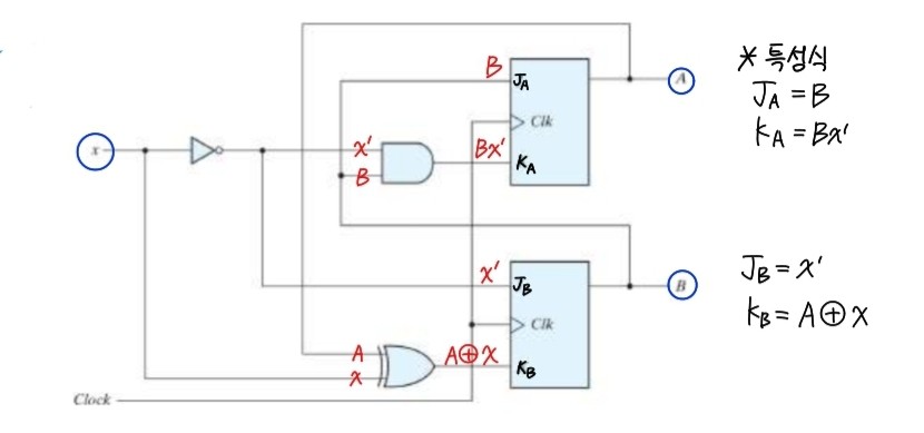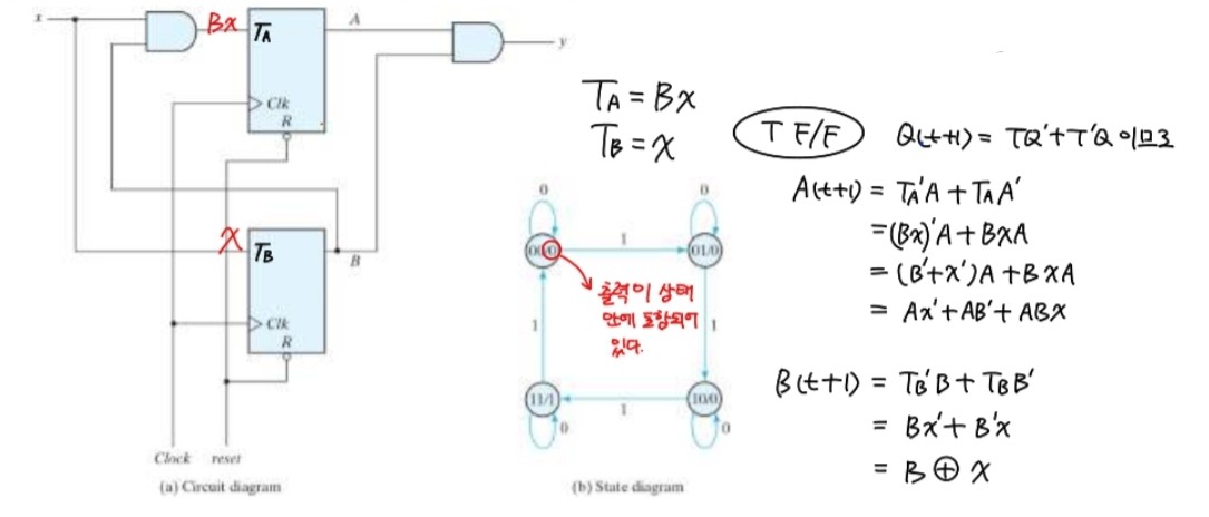 논리도를 바탕으로 특성식을 구하면 TA = BX, TB = X