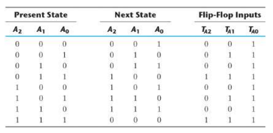 상태 5개를 나타내기 위해선 플립플롭은 3개(2^3=8)가 필요하다.