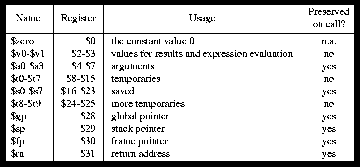 MIPS register naming