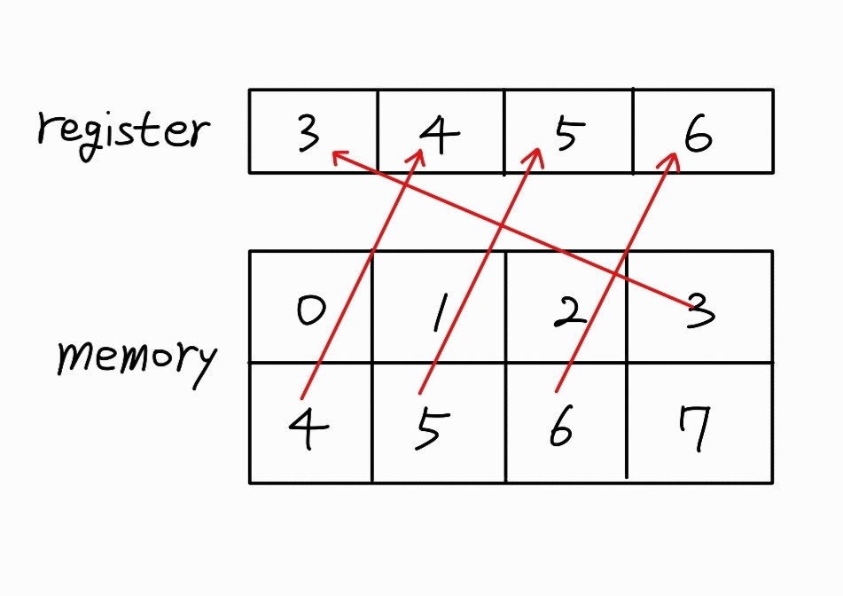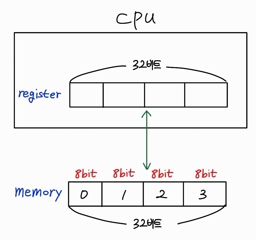예를 들어 3번지 메모리를 레지스터로 읽어온다면, 3번부터 시작해서 4바이트 즉, 3,4,5,6을 읽어와야 한다.