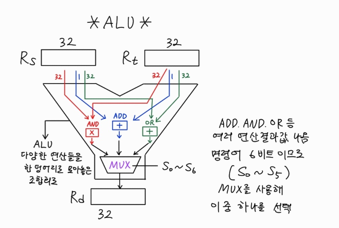 AND,ADD,OR등 여러 연산을 하게 되는데, 이 중 MUX를 사용하 하나의 결과값만 선택한다.
