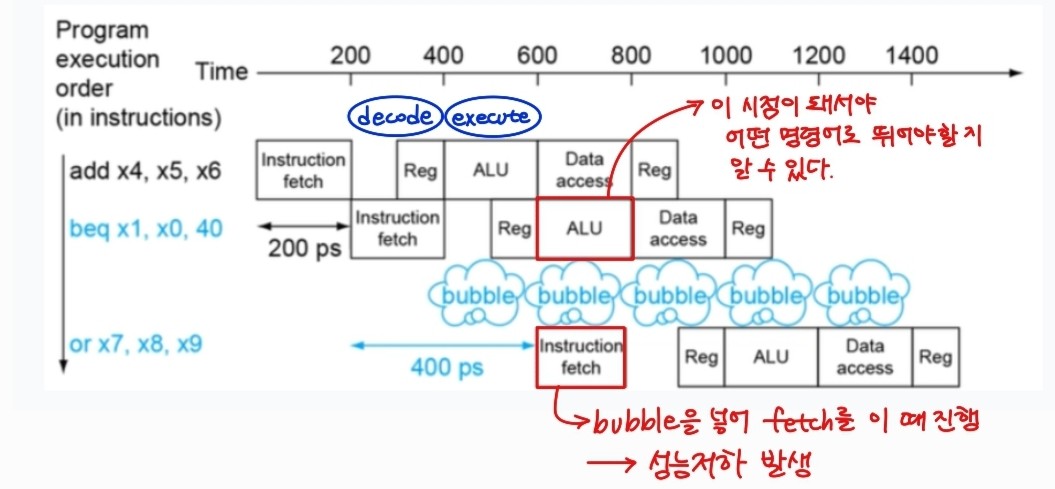 따라서 fetch할 명령어가 늦게 결정되어 발생하는 해저드이다.
