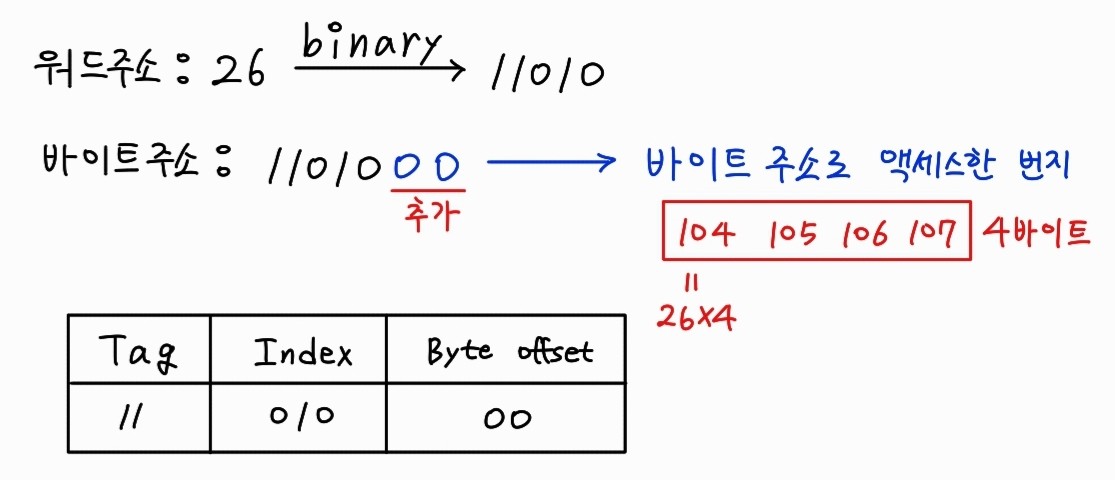 따라서 캐시 한 칸은 4바이트에 대응된다.