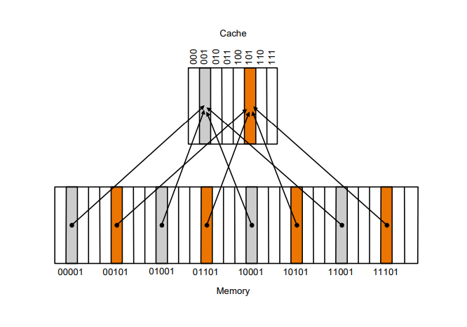 각 메모리 워드에 캐시 내의 위치를 할당하는 가장 간단한 방법은 그 워드의 메모리 주소를 이용하는 것이다.