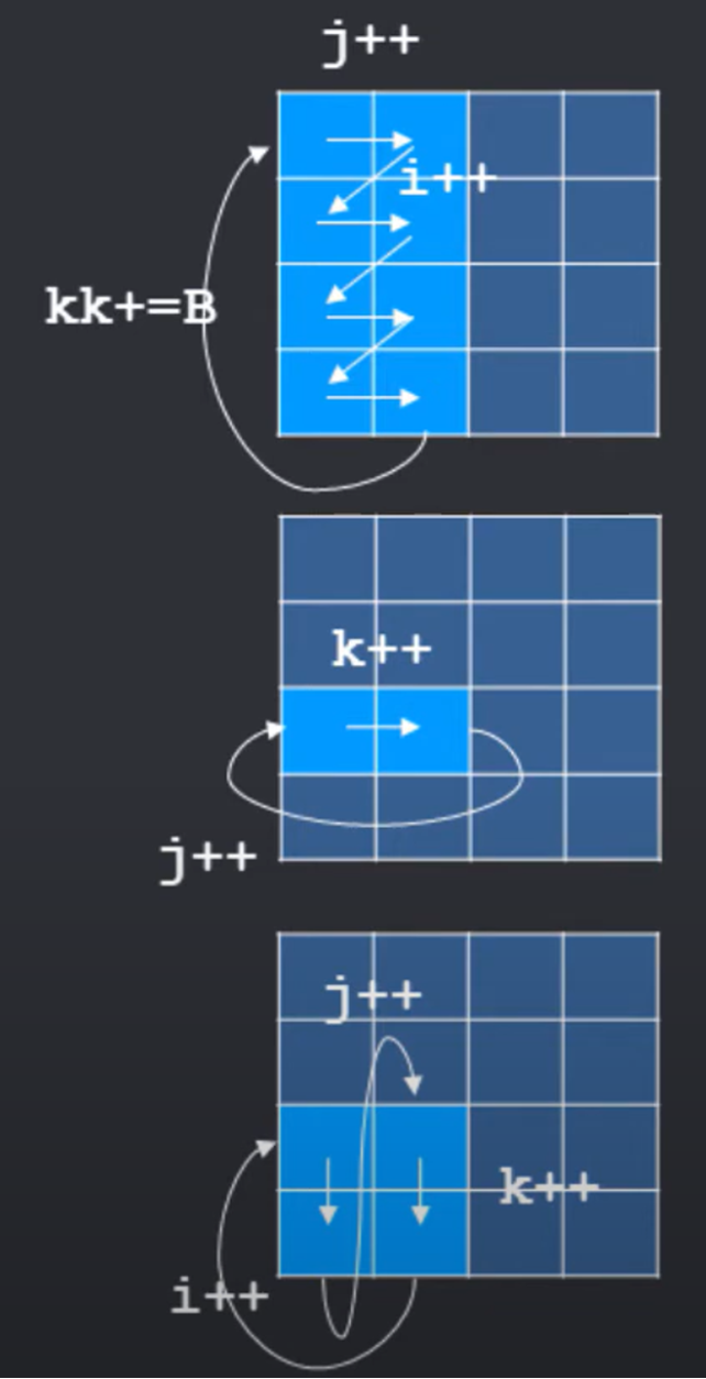 - i 루프는 반복적으로 z의 BxB 요소로 구성된 부분 행렬(submatrix)에 액세스.