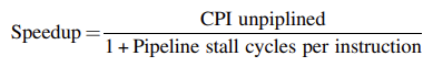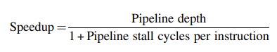 모든 instruction이 동일한 cycle 수를 갖는 경우 pipleline의 깊이와 동일해야 한다. 이 경우 pipeline되지 않은 CPI는 pipeline의 깊이와 같아지게 되어 speedup은 다음과 같다.