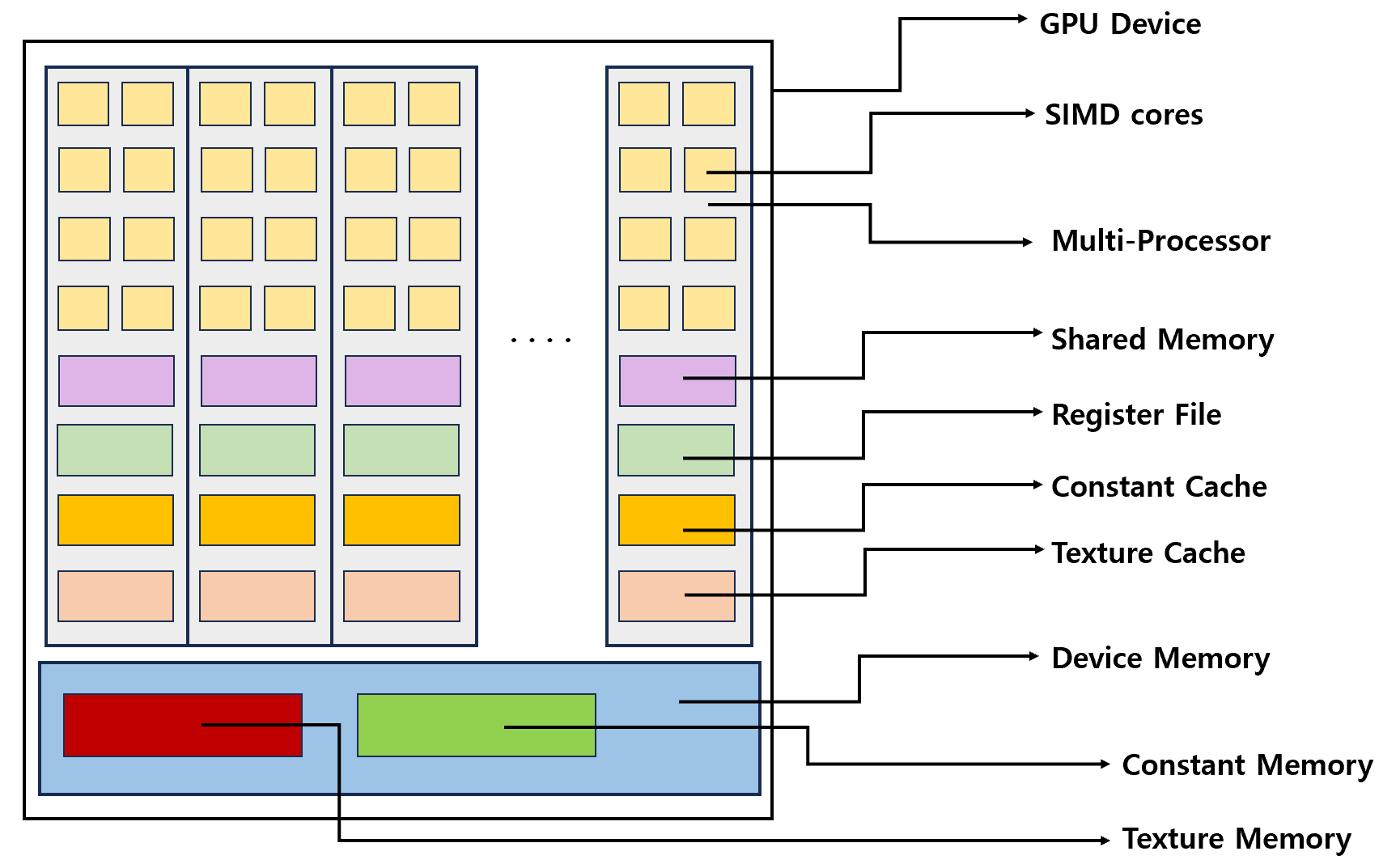 GPU application의 performance에 영향을 주는 요인들 중 memory와 관련된 제약 사항이 가장 큰 부분을 차지하고 있다. 대부분의 시간 동안 application의 성능은 memory와 관련된 제약으로 인해 bottleneck이 일어나게 되므로, 알맞은 type의memory를 효율적으로 사용하는 것이 중요하다.