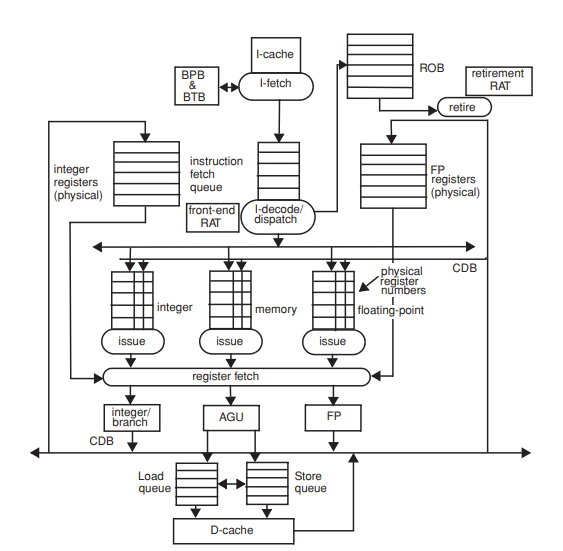 - BPB, BTB는 instruction fetch engine에 연결된다.