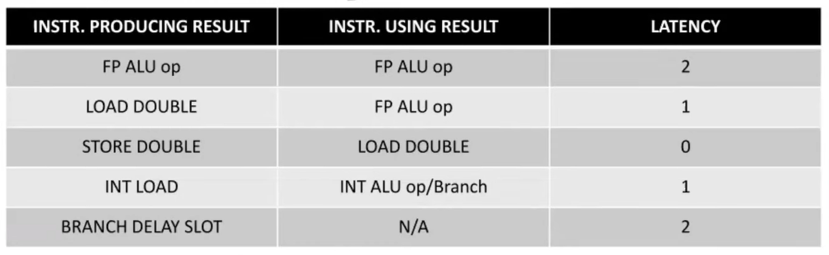FP ALU operation의 경우, (fadd -> fadd)이전에 issue된 instruction의 결과를 사용하려면 뒤따르는 instruction은 2 클럭을 기다려야 한다.