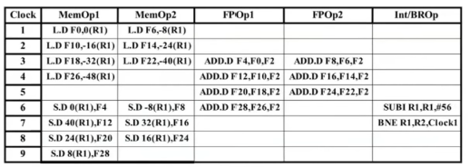 loop가 7번 unroll된 상황으로 7번의 L.D, S.D, ADD.D instruction이 실행된 것을 확인할 수 있다.