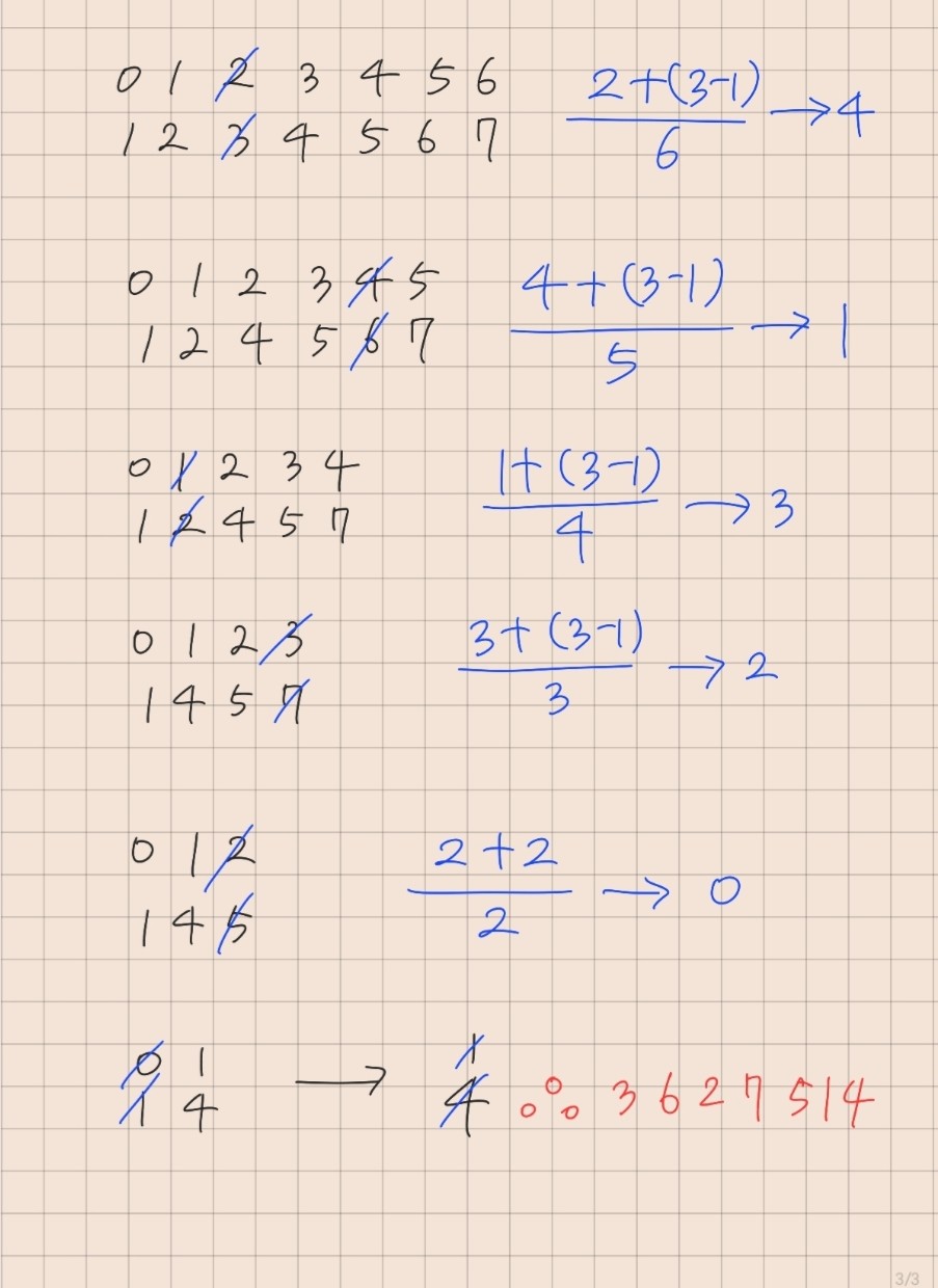 < 3, 6, 2, 7, 5, 1, 4 >임에 주의!