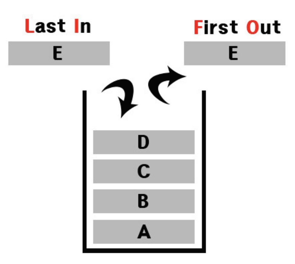 입력과 출력: 후입선출(LIFO = last in first out)방식 >> 가장 나중에 넣은 데이터를 가장 먼저 꺼낸다