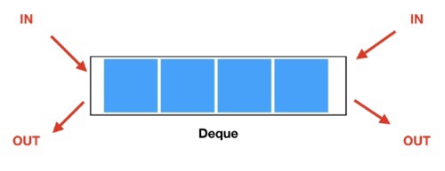맨 앞과 맨 끝 양쪽에서 원소를 추가 / 삭제하는 자료구조이다 >> 양방향 대기열, 스택과 큐를 합친 형태