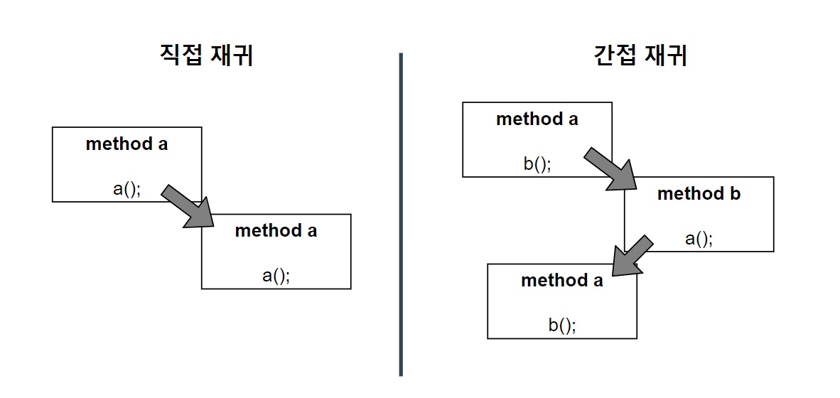 직접 재귀 : 자기 자신과 똑같은 함수 호출