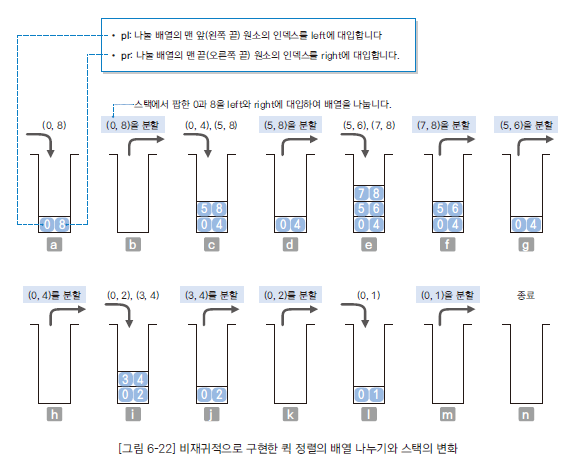 """a[left] ~ a[right]를 퀵 정렬 (비재귀적인 퀵 정렬)"""