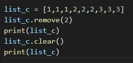 *remove() 함수로 지정한 값이 리스트 내부에 여러 개 있어도 가장 먼저 발견되는 하나만 제거한다.