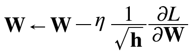 -많이 움직인, 크게 갱신된 원소는 학습률 낮아짐 >> 학습률 감소가 원소마다 다르게 적용됨