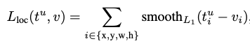 u : 해당 roi의 ground truth라벨 값t : 예측한 bounding box좌표를 조정하는 값v : 실제 bounding box 좌표의 값