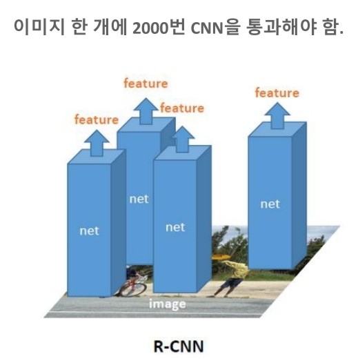 -2000개의 region proposal이미지를 cnn으로 feature extraction하지 않고, 원본 이미지만 CNN으로 feature map 생성