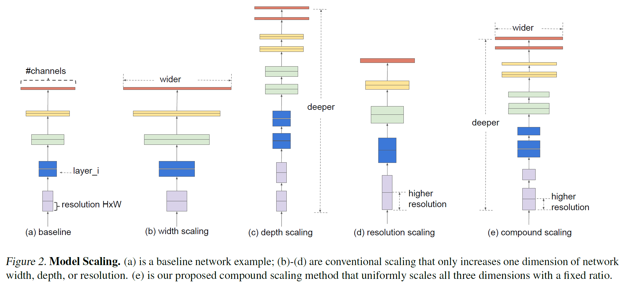 Depth(d) : 가장 흔한 scale-up 방법으로, 깊은 layer은 더 높은 성능을 낸다.